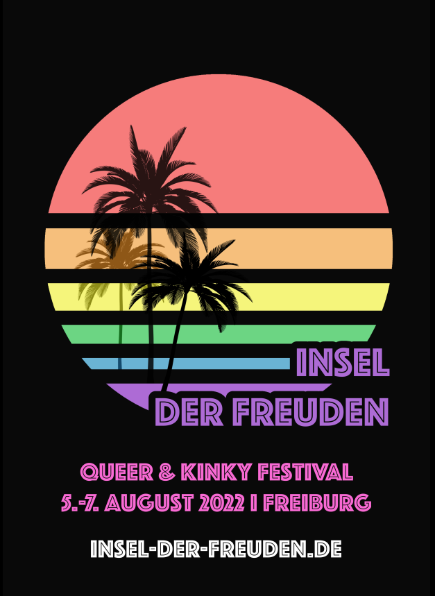 Das "Insel der Freuden" Festival ist eine explizit queere Veranstaltung, d.h. ein geschützter Raum für Menschen aller körperlicher und sexueller Orientierungen. Homo- und Transfeindlichkeit, sowie jeden Sexismus werden wir nicht dulden und es gibt unmittelbare Konsequenzen!!!