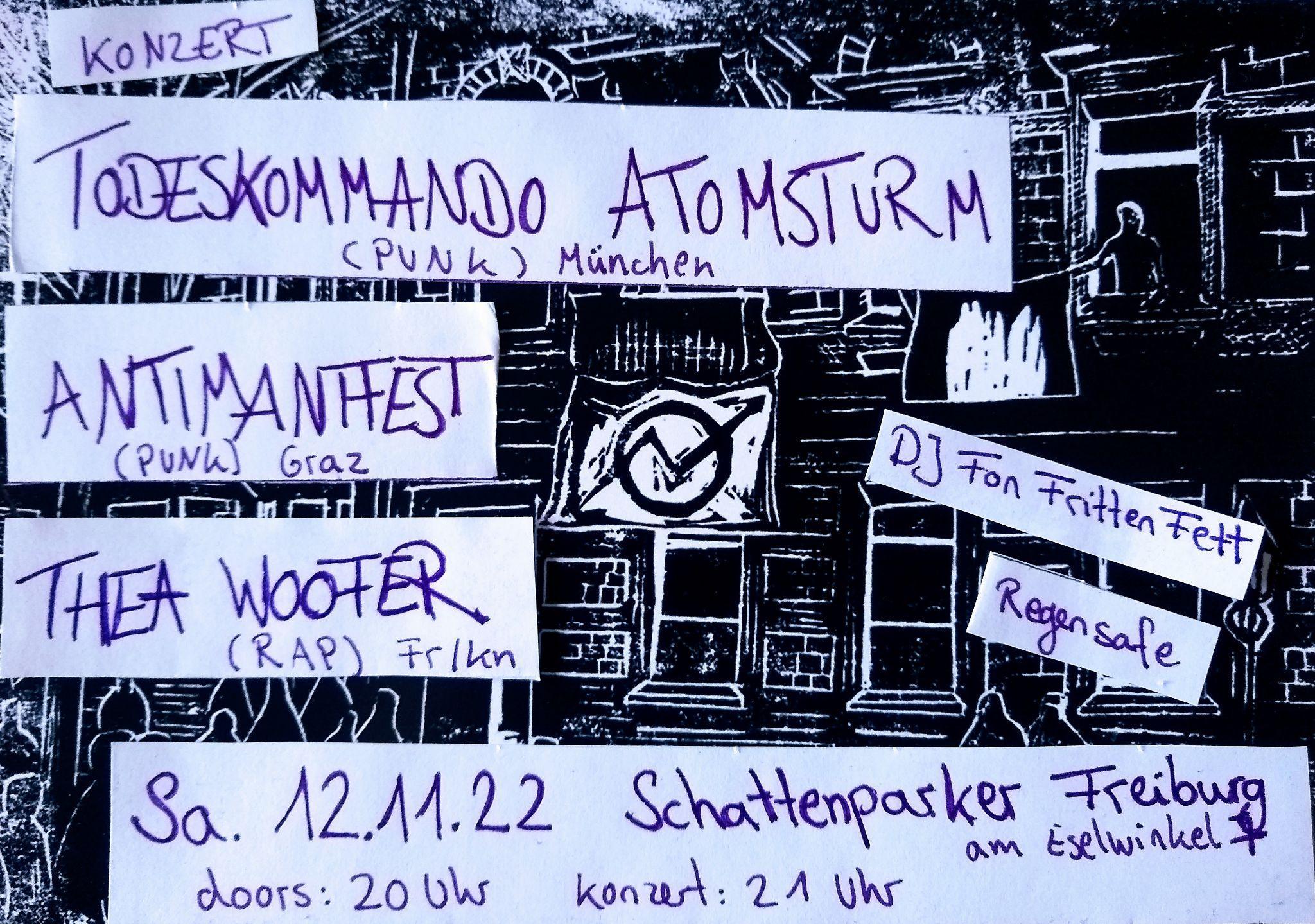 Todeskommando Atomsturm und Antimanifest kommen nach Freiburg, um uns mit Punk vom feinsten und ihren neuen Songs ordentlich einzuheizen!