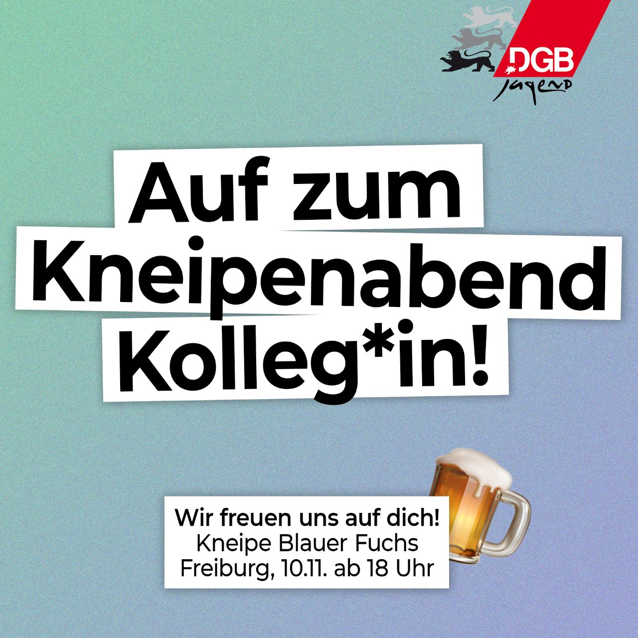 Du hast Lust mal bei uns vorbei zu schnuppern und uns in lockerer Atmosphäre kennen zu lernen? Oder du bist gewerkschaftlich aktiv und hast Lust dich zu vernetzen und einfach einen netten Abend zu verbringen? Dann komm doch auf ein Getränk vorbei.
