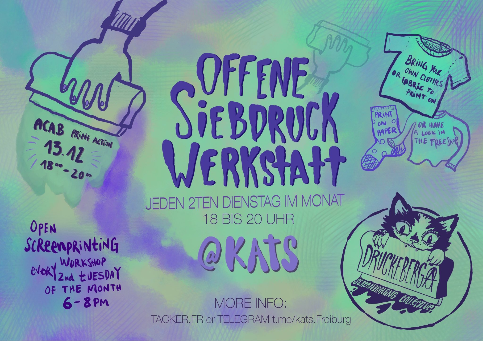 ab dem 13.12. kann jeden zweiten Dienstag im Monat in der Kats gesiebdruckt werden.