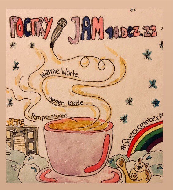 Und wenn Du Lust hast, Worte von dir auf der Bühne zu teilen, dann schreib uns auf: queer-kats@riseup.net
