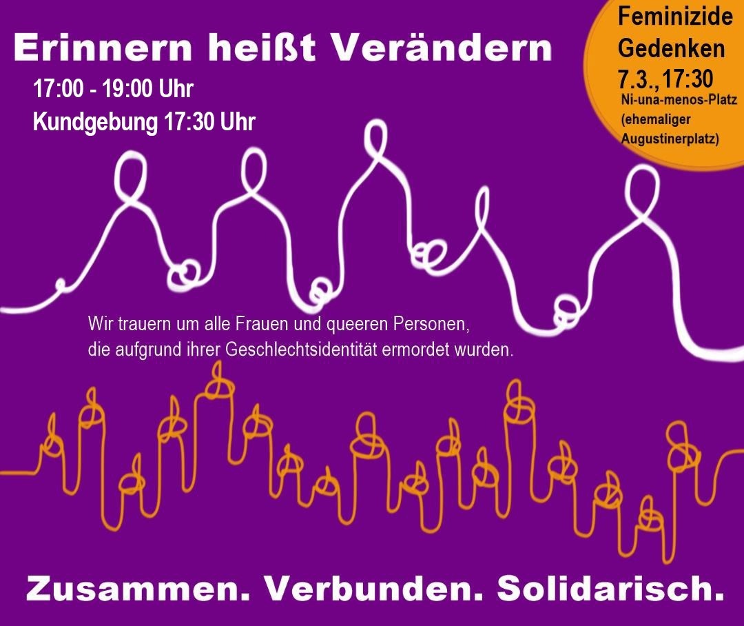 We want to come together on March 7th, 2023, on the eve of the International Women's Day, to commemorate all murdered women and queer persons.