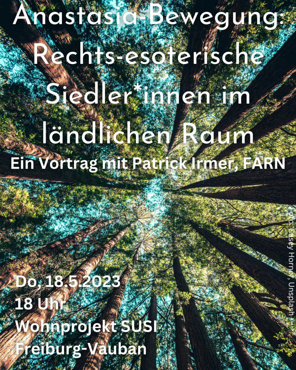 Ein Leben auf dem Land und eigenes Gemüse aus dem Garten: Die Siedler*innen der Anastasia-Bewegung wirken auf den ersten Blick wie harmlose Öko-Aussteiger*innen. Sie selbst stellen sich als eine Bewegung dar, die im Einklang mit der Natur möglichst ökologisch und nachhaltig leben will und dabei unpolitisch ist. Ihre Ideologie beruht jedoch auf Antisemitismus, Verschwörungsdenken und einem reaktionären, rassistisch-völkischen Weltbild. Im Rahmen des Vortrags setzen wir uns kritisch mit der Bewegung auseinander und beleuchten dabei Ideologie und Weltbild, Akteur*innen der Szene sowie Strukturen und Verknüpfungen.