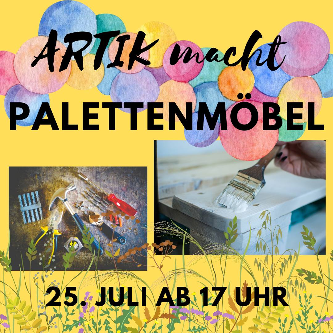 Die Palettenmöbel des ArTiks…viel genutzt und mit ordentlichen Gebrauchsspuren versehen…ein Glow-Up für unsere Sitzgelegenheiten steht deswegen an! Am kommenden Dienstag, den 25. Juli ab 17 Uhr ? Alle, die Lust haben, Palettenmöbel zu bauen, zu reparieren und zu tüfteln, sind herzlich eingeladen, kreativ zu werden ✨ ⛏ Nimmt eure Lieblingsmenschen und Lieblingswerkzeuge mit und wenn ihr Ideen habt, werden die auch einen Platz finden ?