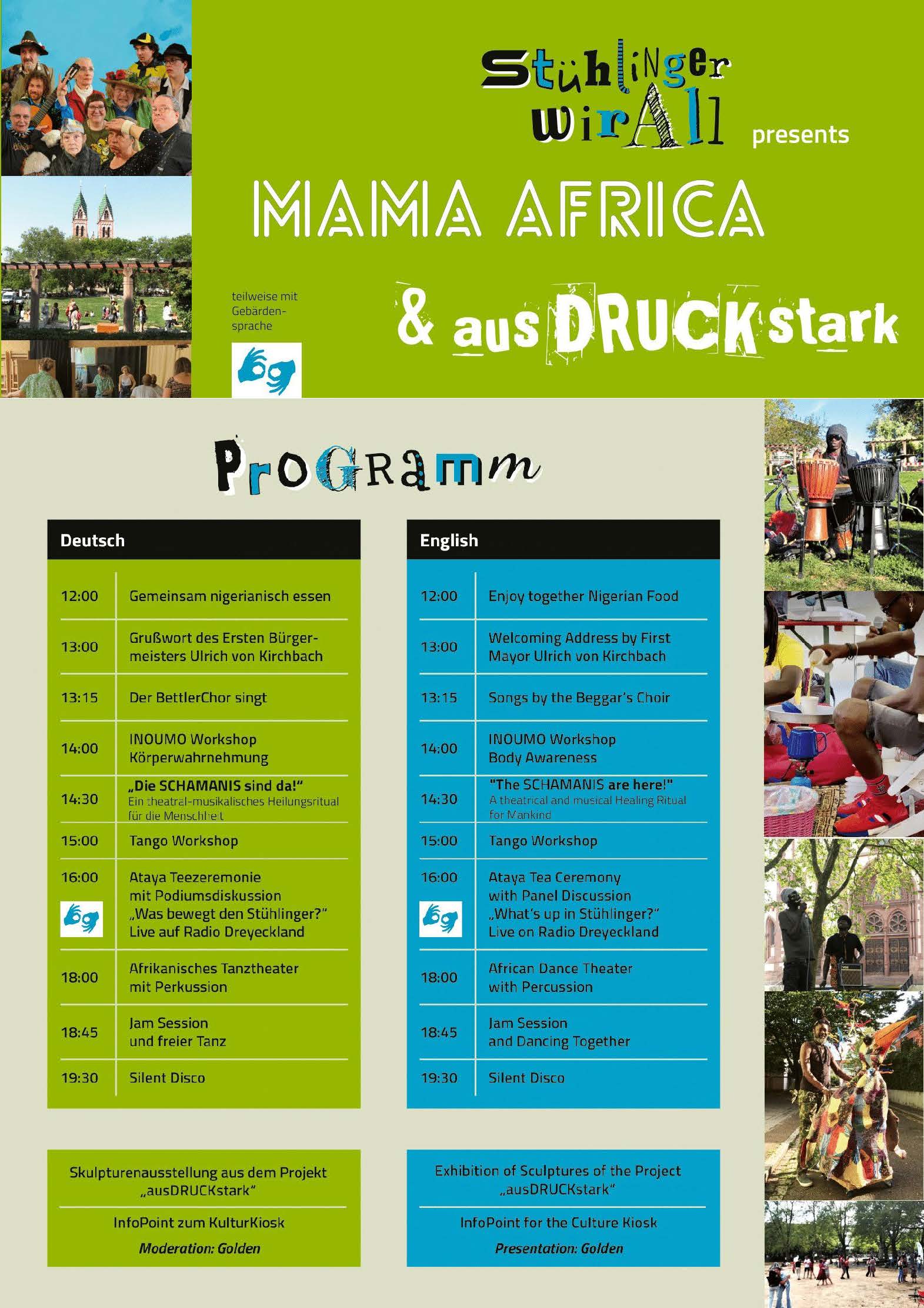 EIN Tag ZWEI Projekte VIELE Mitwirkende: Abschlussfest für "Mama Africa: Move & Groove your Mind" und "ausDRUCKstark"