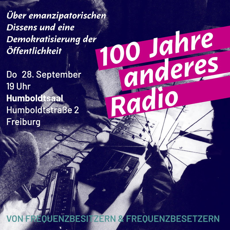 Wenn unsere Gesellschaft gerechter werden soll, muss auch die Öffentlichkeit, müssen die Medien gerechter werden. Wer spricht für wen? Worüber? Wer hört überhaupt zu und wer kann auf gleiche Weise antworten? Das sind seit jeher die großen Fragen emanzipatorischer Medienkritik. Im Oktober 2023 wird das Radio in Deutschland 100 Jahre alt. Dies Jubiläum ist Anlass im Spannungsverhältnis von emanzipatorischem Anspruch und rauen Radiowirklichkeiten Ideen für die Zukunft auszuloten. Was könnte Rundfunk sein, was braucht es dafür und woran mangelt es? Fragen die sich besonders anhand der Geschichte Radio Dreyecklands, dem lange Jahre illegalen und ältesten noch existierenden Freien Radios in der BRD, thematisieren lassen. Es diskutieren Protagonist:innen unterschiedlicher Generationen Radio Dreyecklands und anderer ehemaliger linker Piratensender sowie Medientheoretikerinnen und Medientheoretiker.