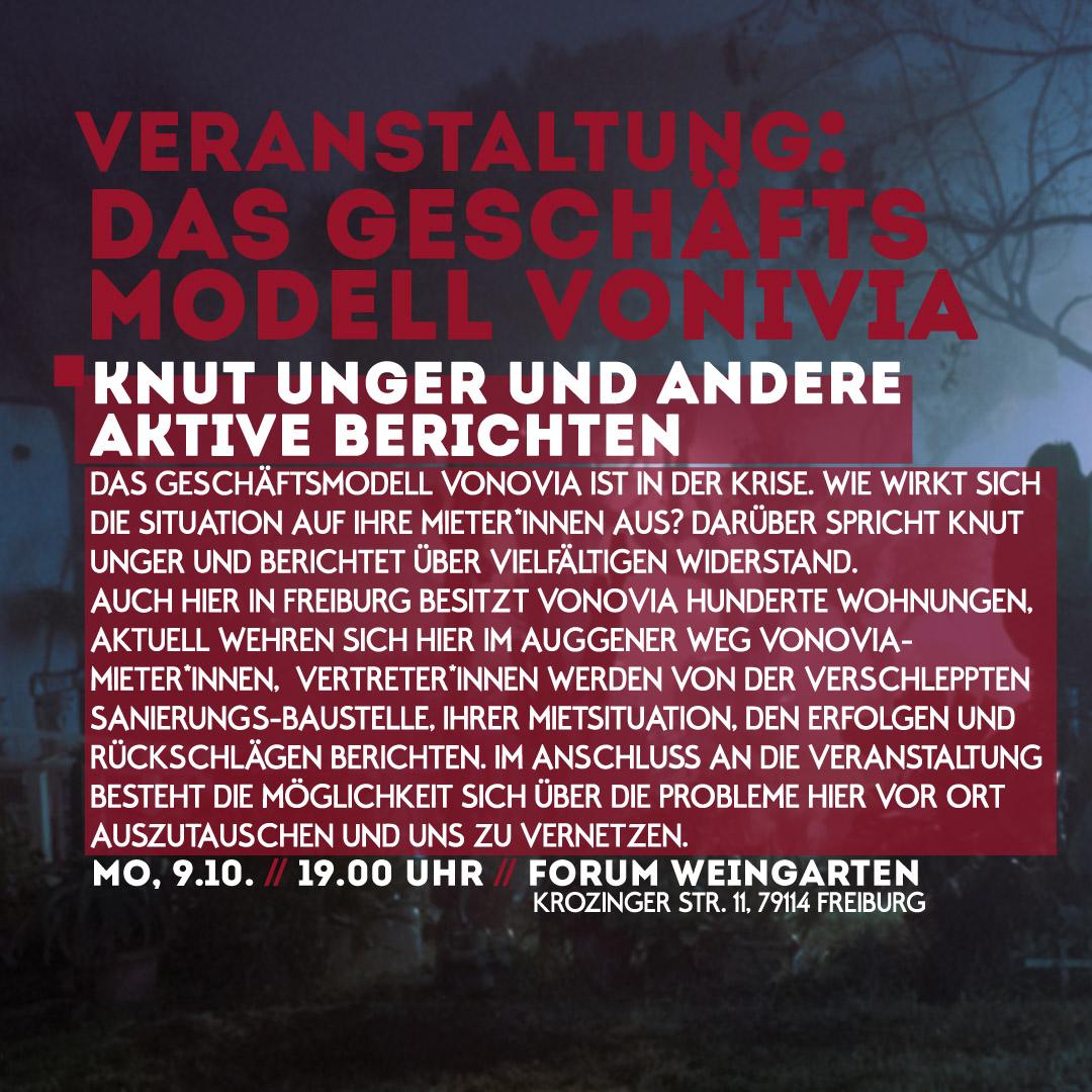 aus gesundheitlichen Gründen kann unser Referent Knut Unger nicht zur morgigen Veranstaltung im Forum Weingarten kommen. Die Veranstaltung muss daher leider verschoben werden, wir kümmern uns aber um einen neuen Termin. Als Mietenbündnis-AG ‚Zusammen aktiv werden‘ sind wir aber morgen Abend trotzdem vor Ort und freuen uns über einen spannenden Austausch mit allen Interessierten.