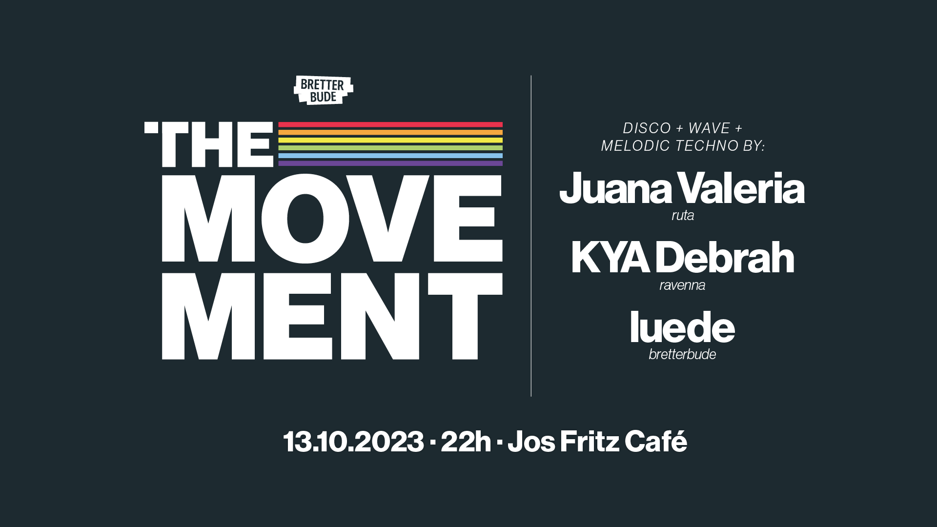 The Movement heißt: Back to the Future, heißt: Techno für Alle! Die elektronische Musik ist tief verwurzelt mit der LGBTTIQ*-Community. Die Partys galten lange Zeit als sicherer Ort für queere Menschen und wir wollen, dass dies so bleibt. Deshalb veranstalten wir The Movement nur in Venues, die auch außerhalb der Partyreihe als queere Safe Spaces gelten. Als Bretterbude setzen wir uns gegen Sexismus, Homophobie und Menschenverachtung ein – natürlich auch auf Technopartys.