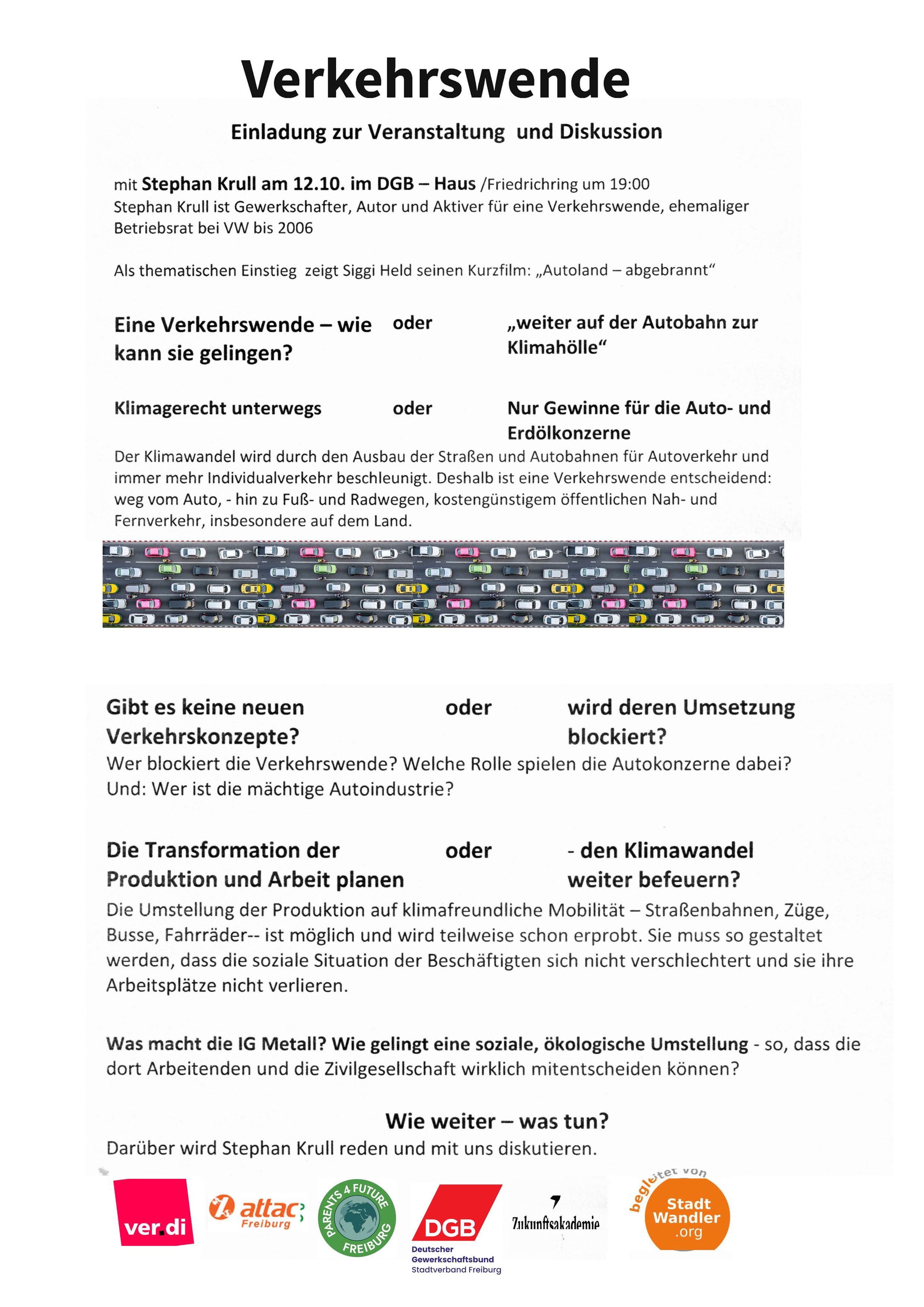 Stephan Krull - Gewerkschafter, Autor und Aktiver für eine Verkehrswende, ehemaliger Betriebsrat bei VW - wird dazu reden und mit uns diskutieren