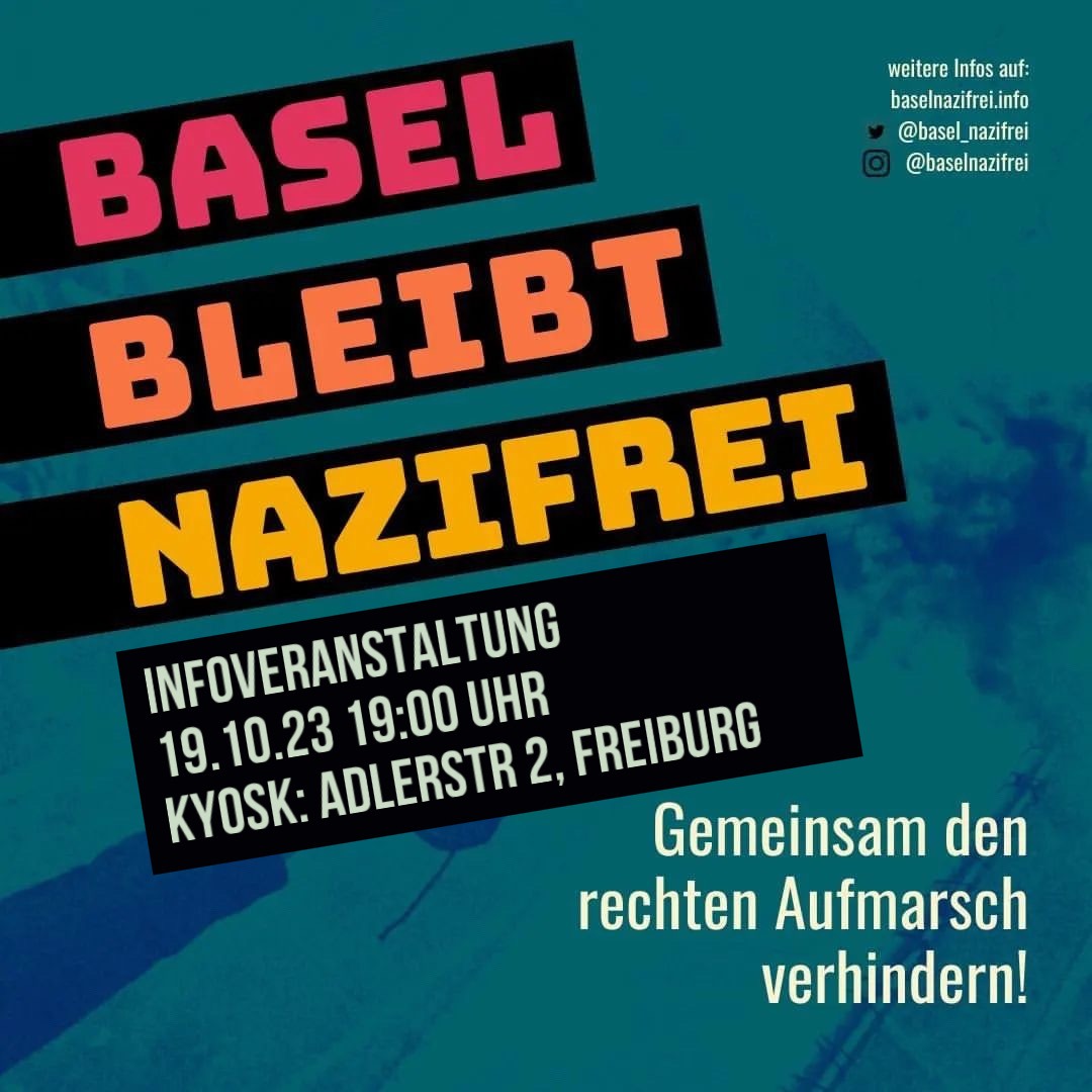 Diese Neue Rechte versucht somit nicht nur den Sprung in die Parlamente, sondern mobilisiert am 21.10.23 zu einer "Dreiländerdemo" nach Basel. Das gilt es zu verhindern.