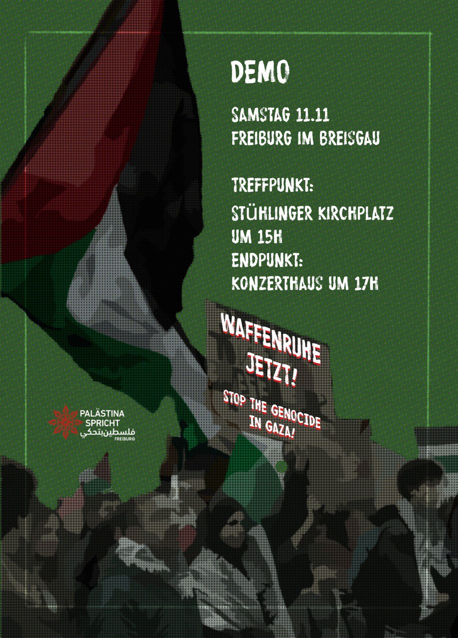 FREIBURG! This Saturday 11.11 we march for a cease fire! We march for Gaza! We march for a free Palestine!