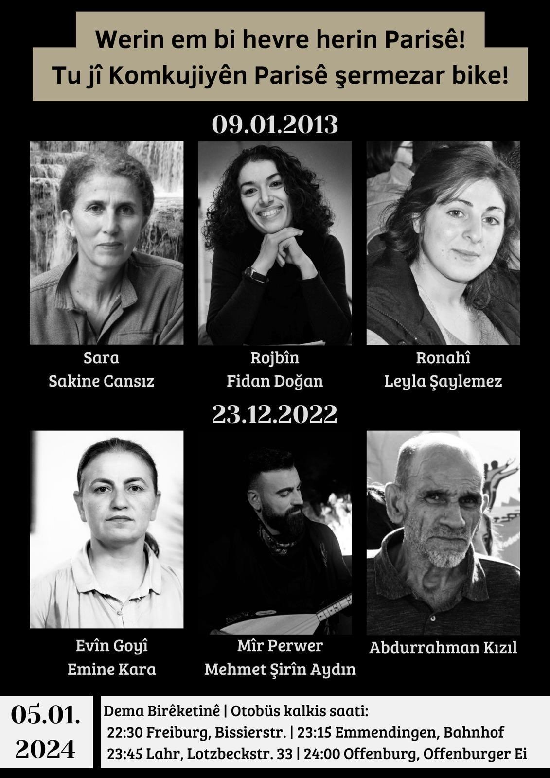 Wir als kurdischer Frauenrat rufen Kurdinnen und Kurden, alle Internationalist:innen und Antifaschist:innen auf, gemeinsam in Paris auf die Straße zu gehen, um gegen die Morde zu protestieren und eine Aufklärung derer zu fordern.