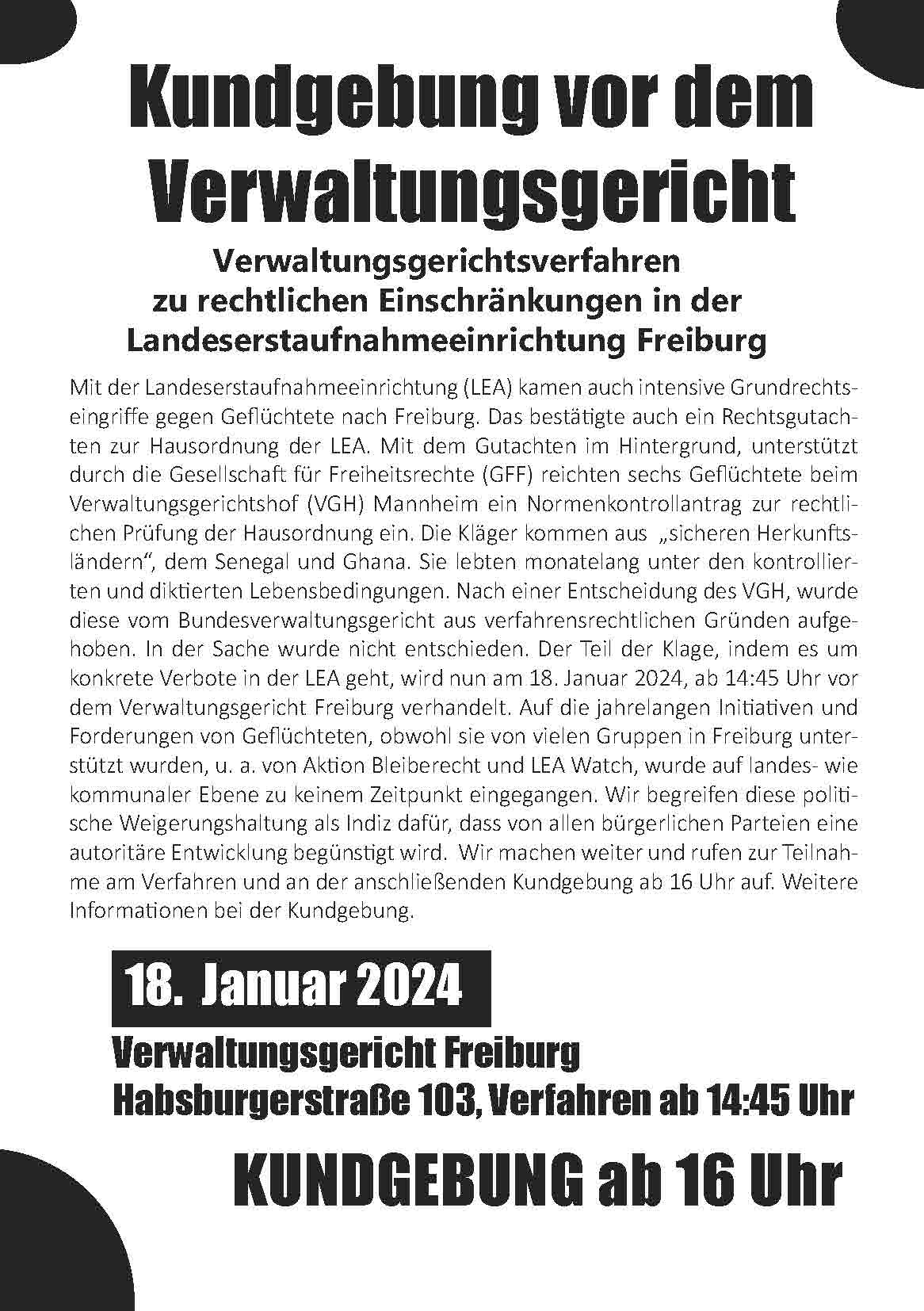 konkrete Verbote in der LEA geht, wird nun am 18. Januar 2024, ab 14:45 Uhr vor
