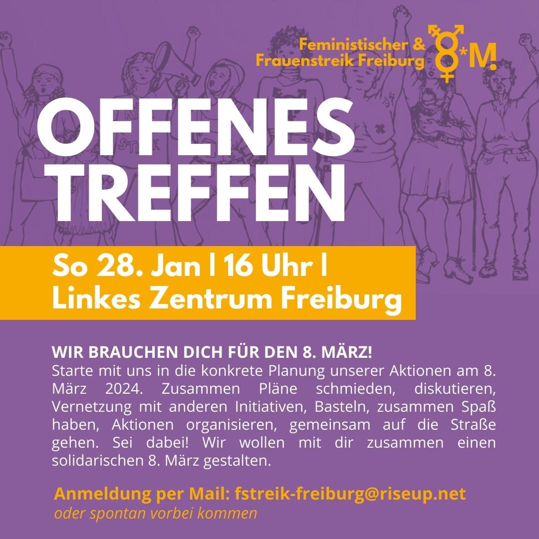 Wir wollen in die konkrete Planung unserer Aktion am 8. März gehen. So viel sei gesagt - alles dreht sich um die Frage wie wir Freiburg zu einer Sorgenden Stadt wandeln können. Was sind Sorgende Städte? Hier findest du einige Infos: https://sorgende-staedte.org/
