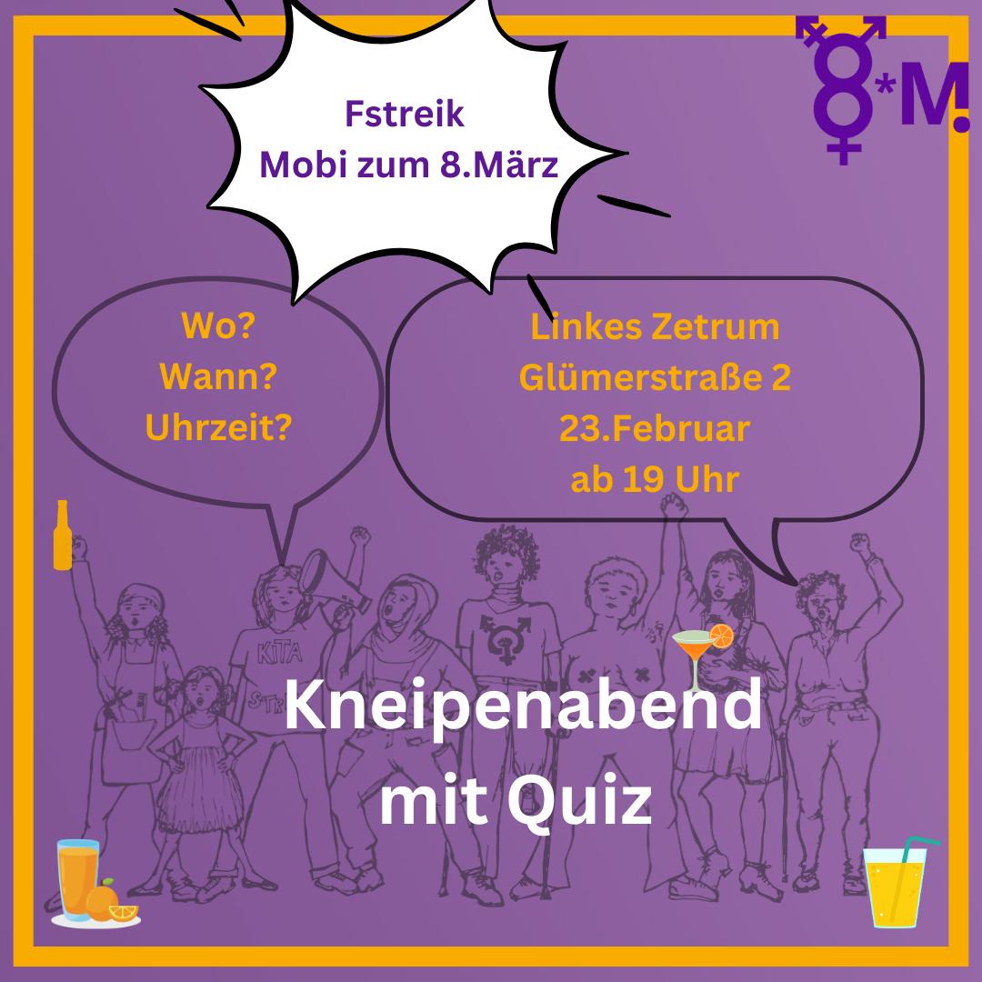Bei der Kneipe findet ihr Informationen dazu, was am 8. März geplant ist, und ihr könnt euch feministisch vernetzen.