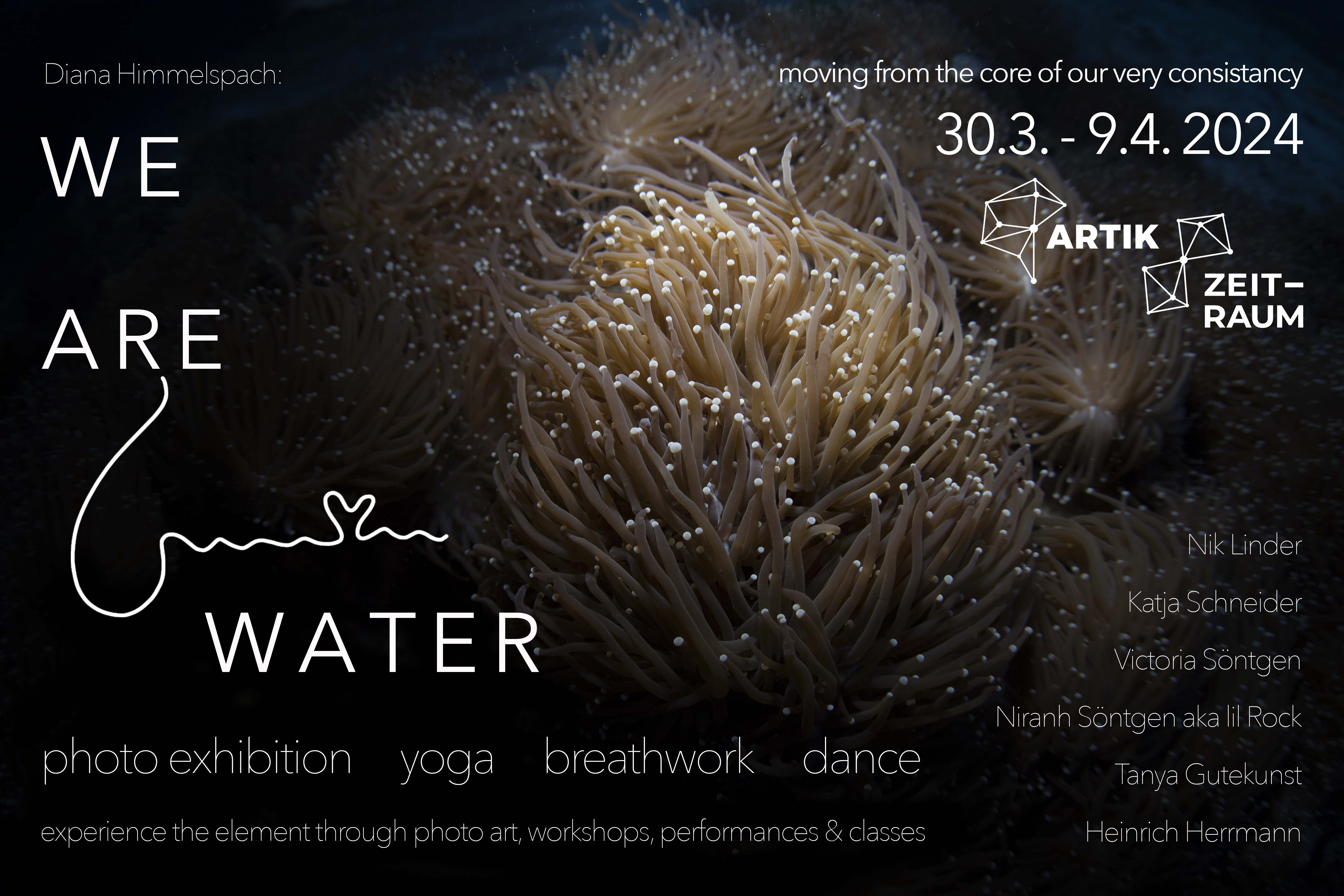 Passend zum Thema werden Tanya Gutekunst und Diana Himmelspach am 6. & 7.4. jeweils 90 Minuten Yoga-Einheiten zum Thema WE ARE WATER – Our Liquid Bodies geben, in der der Ursprung der innersten Bausteine unseres Körpers und Daseins erfahrbar gemacht werden sollen.