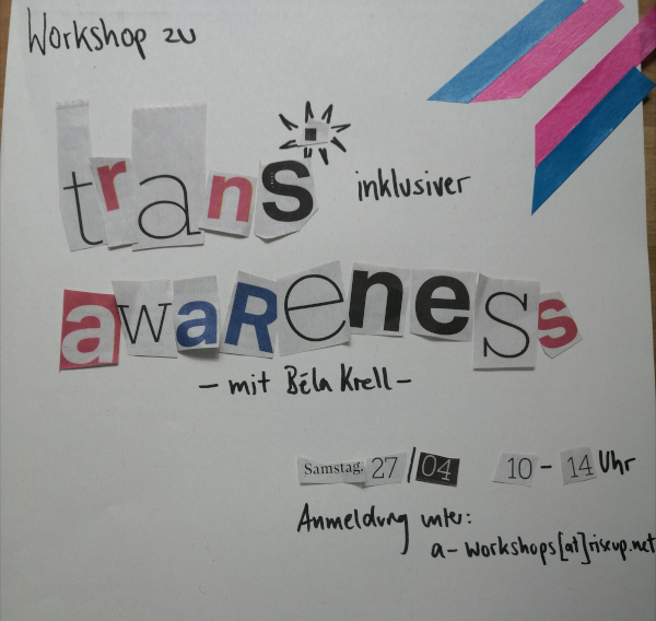 Wie kann Awareness-Arbeit transinklusiv gestaltet werden? Mit welchen diskriminierenden Vorstellungen und Situationen sind verschiedene trans*, nicht-binäre und auch inter* Personen immer wieder konfrontiert? Welche praktischen Schritte können wir umsetzen, um die Vielfalt von Geschlecht noch stärker zu berücksichtigen ... an welchen Stellen geht es vielleicht eher darum, über einen längeren Zeitraum an unserem eigenen verinnerlichten Wissen zu Geschlecht zu arbeiten, um einengende Annahmen zu verlernen und ausschließende und gewaltvolle Strukturen zu transformieren?