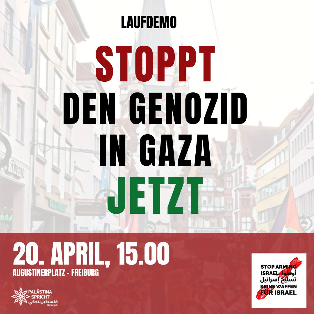 wir laden euch hiermit zu unserer nächsten Demonstration am Samstag, den 20.04.2024 um 15 Uhr ein. Wir treffen uns am Augustinerplatz, von wo die Laufdemo startet.