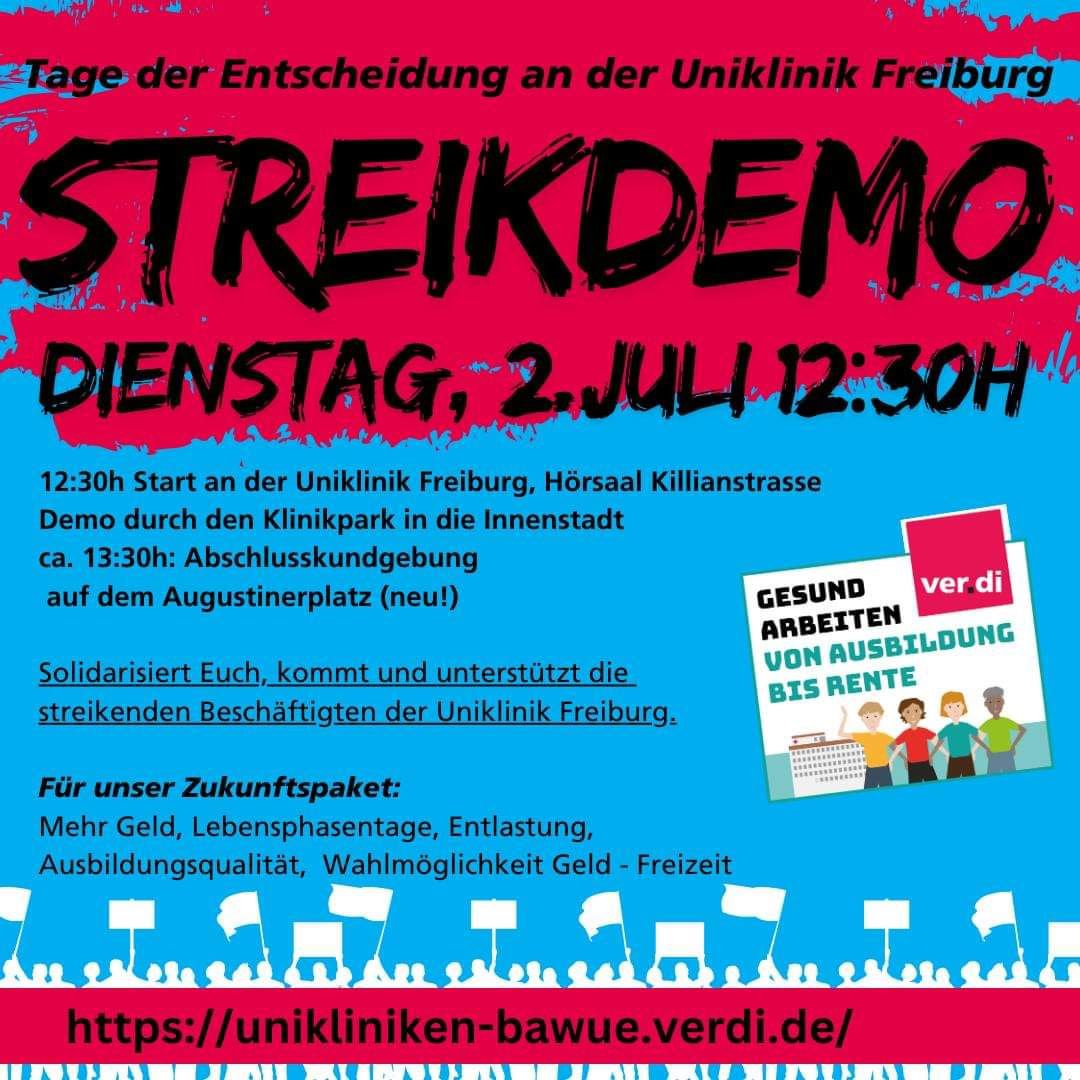 Eine marodes Gesundheitssystem betrifft alle! Also demonstriert in Solidarität mit uns Streikenden für eine zukunftsfähige Gesundheitsversorgung!