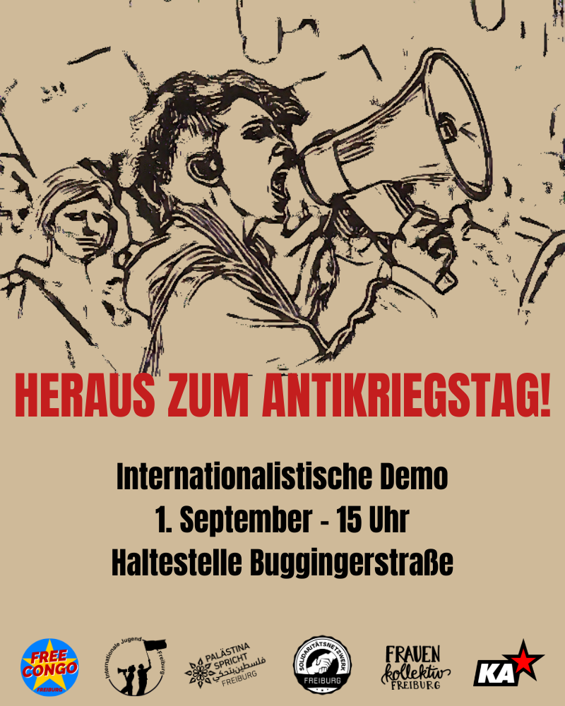 Lasst uns also am Antikriegstag am 1. September auf die Straße gehen. Gegen Kriege, die Millionen umbringen, Gewalt gegen Frauen fördern und Jugendliche an der Front verheizen. Für eine befreite Welt, in der niemand fliehen muss, niemand Profite mit Waffen macht und wir selbstbestimmt in Frieden leben können.