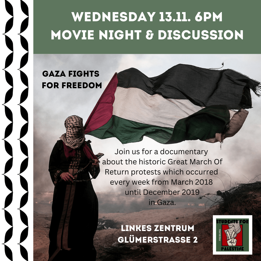 Wir freuen uns auf eine eindrucksvolle Filmvorführung von „Empire Files: Gaza Fights For Freedom“, ein Dokumentarfilm, der den mutigen Kampf des palästinensischen Volkes in Gaza beleuchtet.