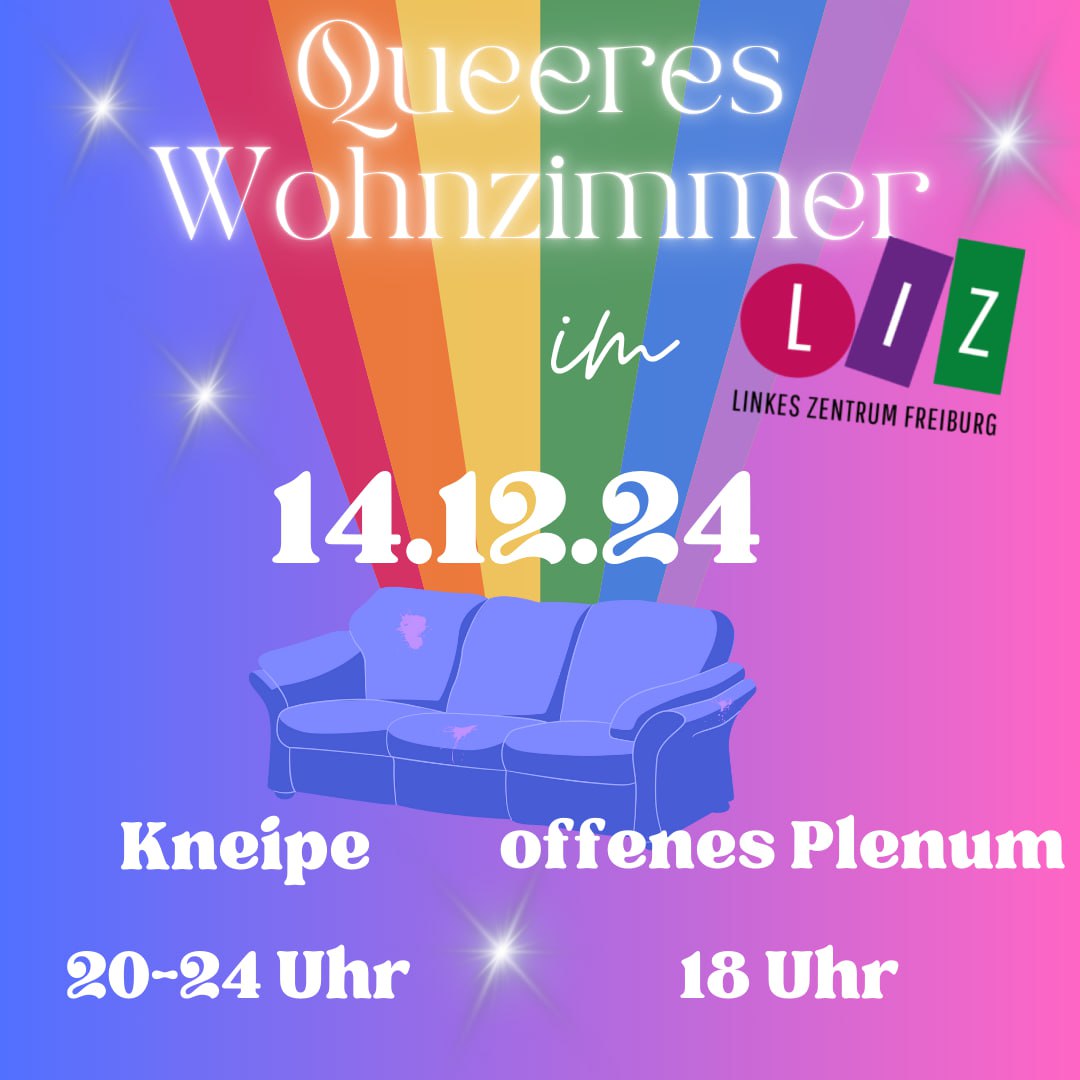 Davor um 18 Uhr findet ein offenes Plenum statt, bei dem alle Menschen eingeladen sind, die Lust haben in der Orga vom Queeren Wohnzimmer mitzuwirken.