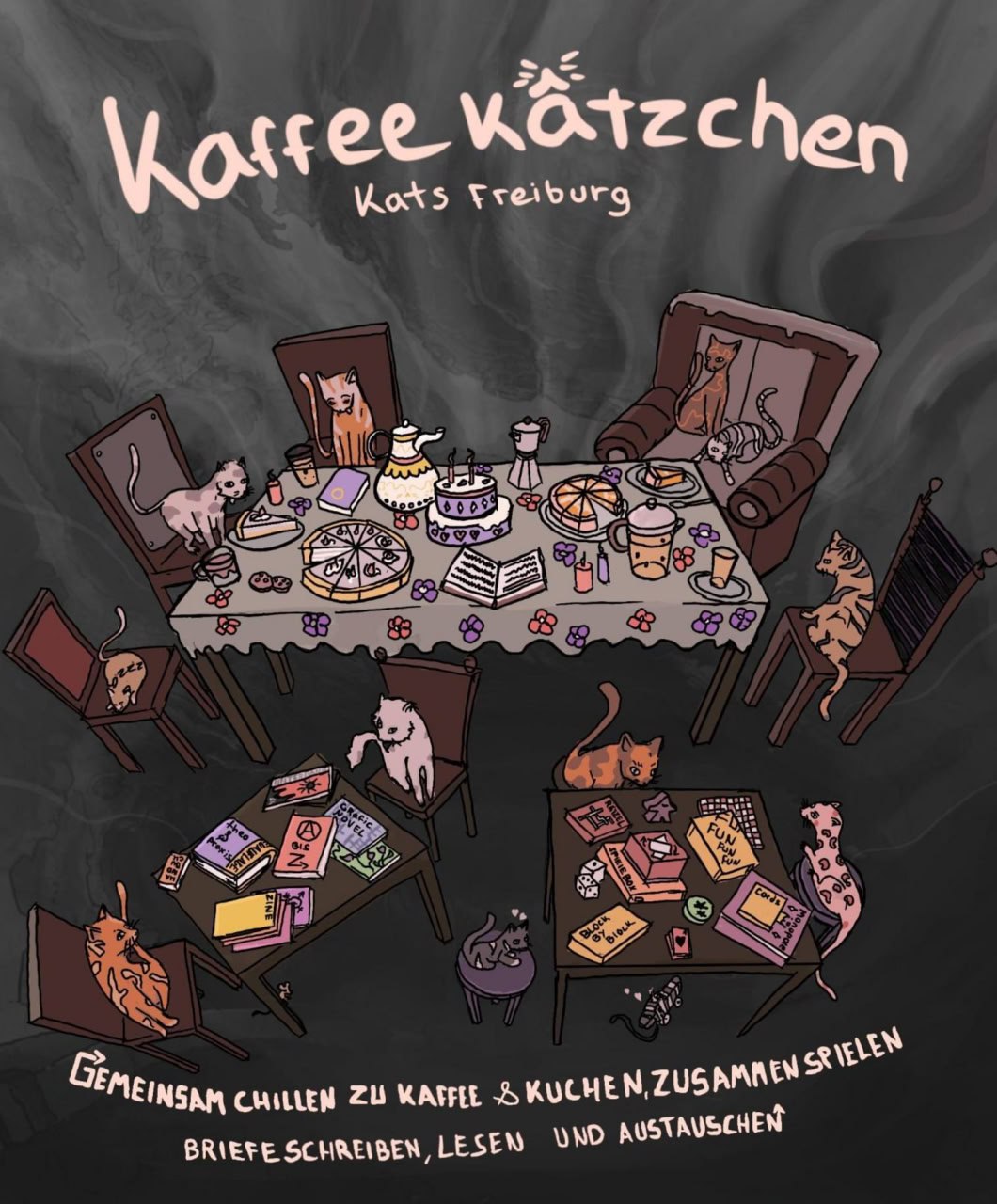 Yay! Sunday 12.01. the Kaffeekätzchen is starting again! At 3 pm the café will be open in the KATS, and everything your heart desires will be served - coffee, cake, other drinks, and a good mood! The Kaffekätzchen is a place to get together, chat, browse through reading material, write letters, play games or do whatever else is nice. Come along to bring a little life into the KATS and your own mind on Sundays! From now on, the Kaffekätzchen will take place every two weeks on Sundays. We are really looking forward to it! You can find the barriers at: https://katsfreiburg.blackblogs.org/barrieren/ If you have any further questions about the barriers or anything else, please contact us at programmxx@riseup.net