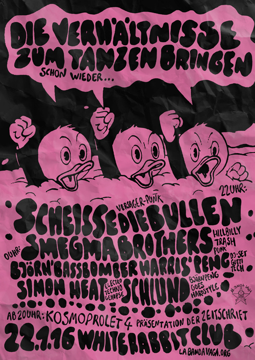 La Banda Vaga (bedeutendste anarchistisch-rätekommunistische Gruppe Freiburgs) lädt zum feucht-fröhlichen emanzipatorischen Musik- und Tanzgenuss!