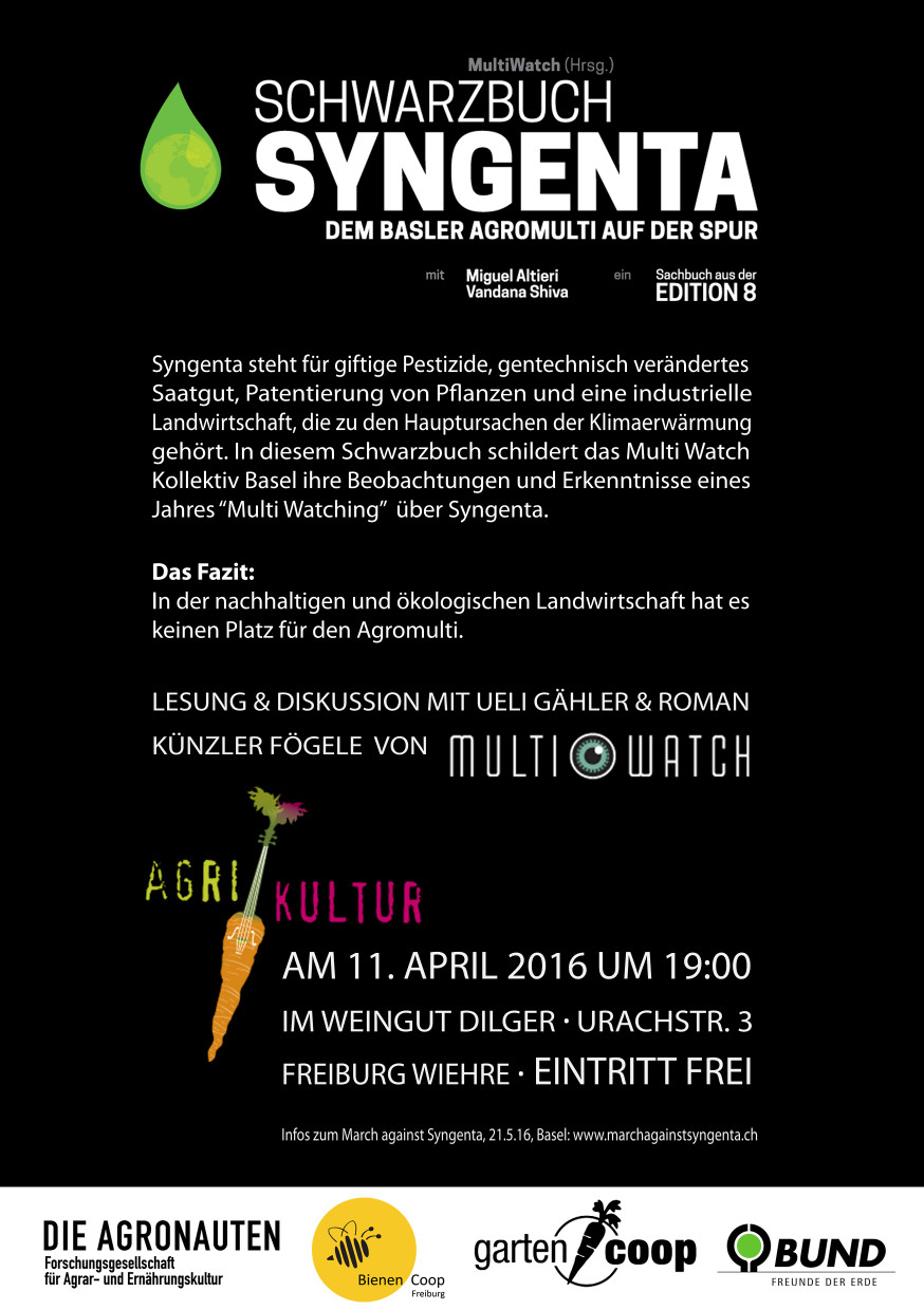 Mit aktuellen Infos zum March against Syngenta & Monsanto am Sa 21. Mai