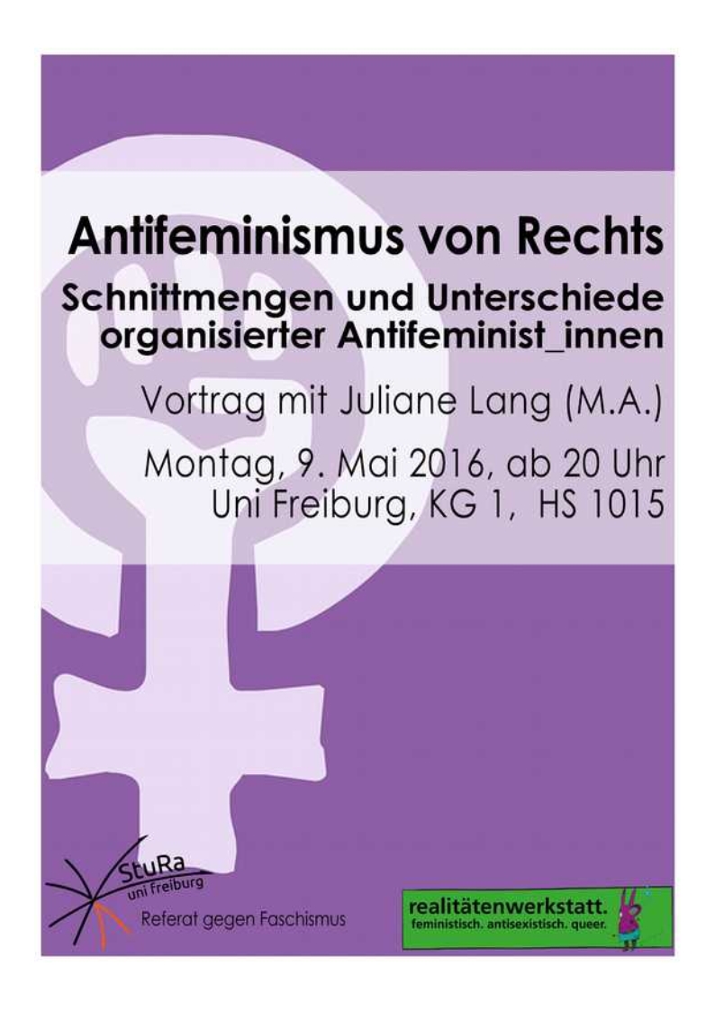 Juliane Lang, M.A. Geschlechter- und Erziehungswissenschaft und Mitglied im Forschungsnetzwerk Frauen und Rechtsextremismus, beschäftigt sich seit Jahren mit Geschlechterpolitiken in der extremen Rechten und beobachtet aktuelle Renaissancen im Antifeminismus einer breiten Zahl an Akteuren auch außerhalb der extremen Rechten.