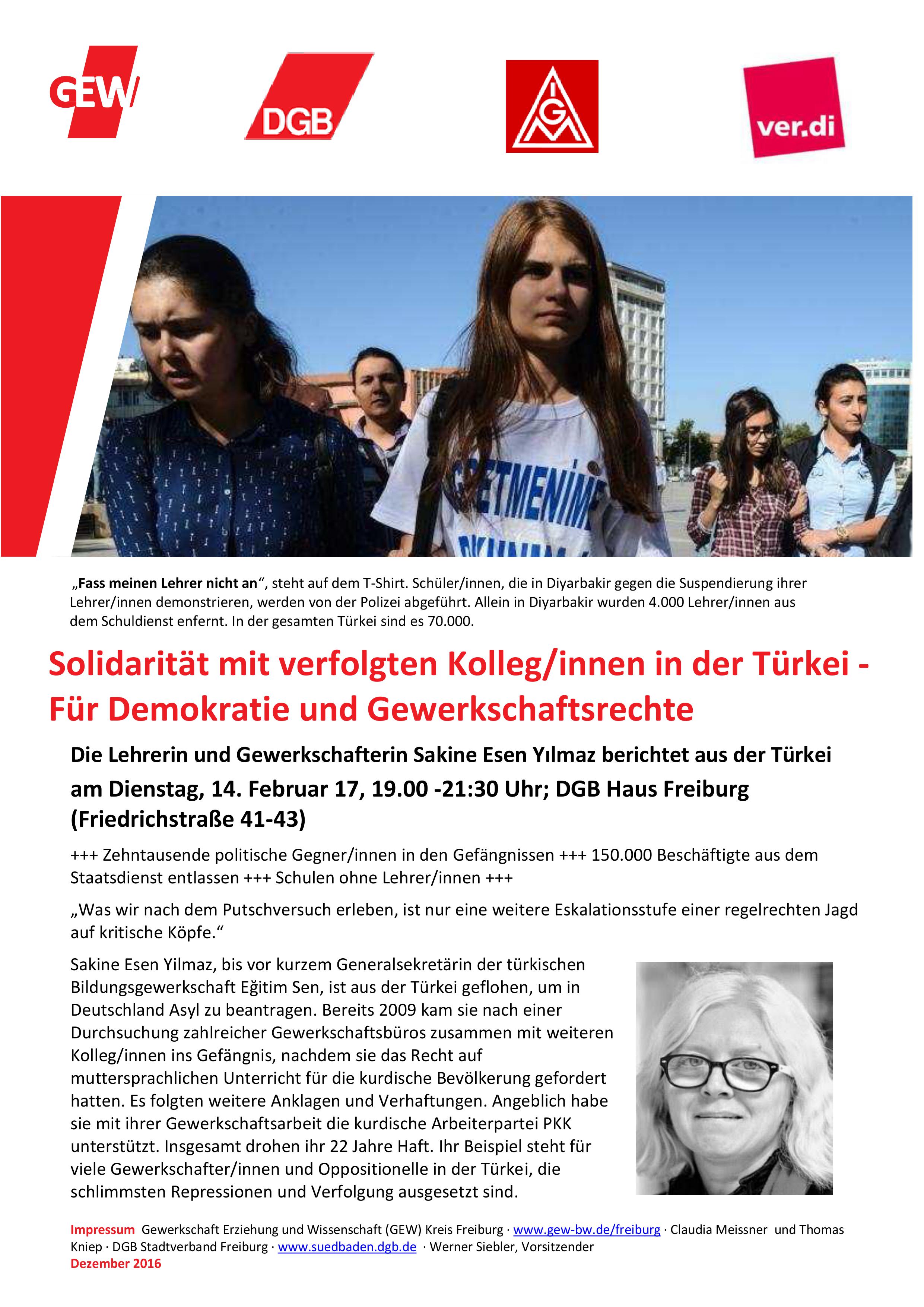 +++Solidarität mit verfolgten Kolleg/innen in der Türkei - Für Demokratie und Gewerkschaftsrechte+++
