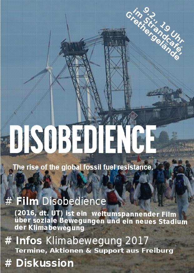 Außerdem gibt es noch eine kurze Filmvorführung von “Disobedience” in dem ihr Aufnahmen von den “break free from Fossil fuels” - Protesten der letzten Jahre zu Gesicht bekommen könnt -> sehr motivierend!