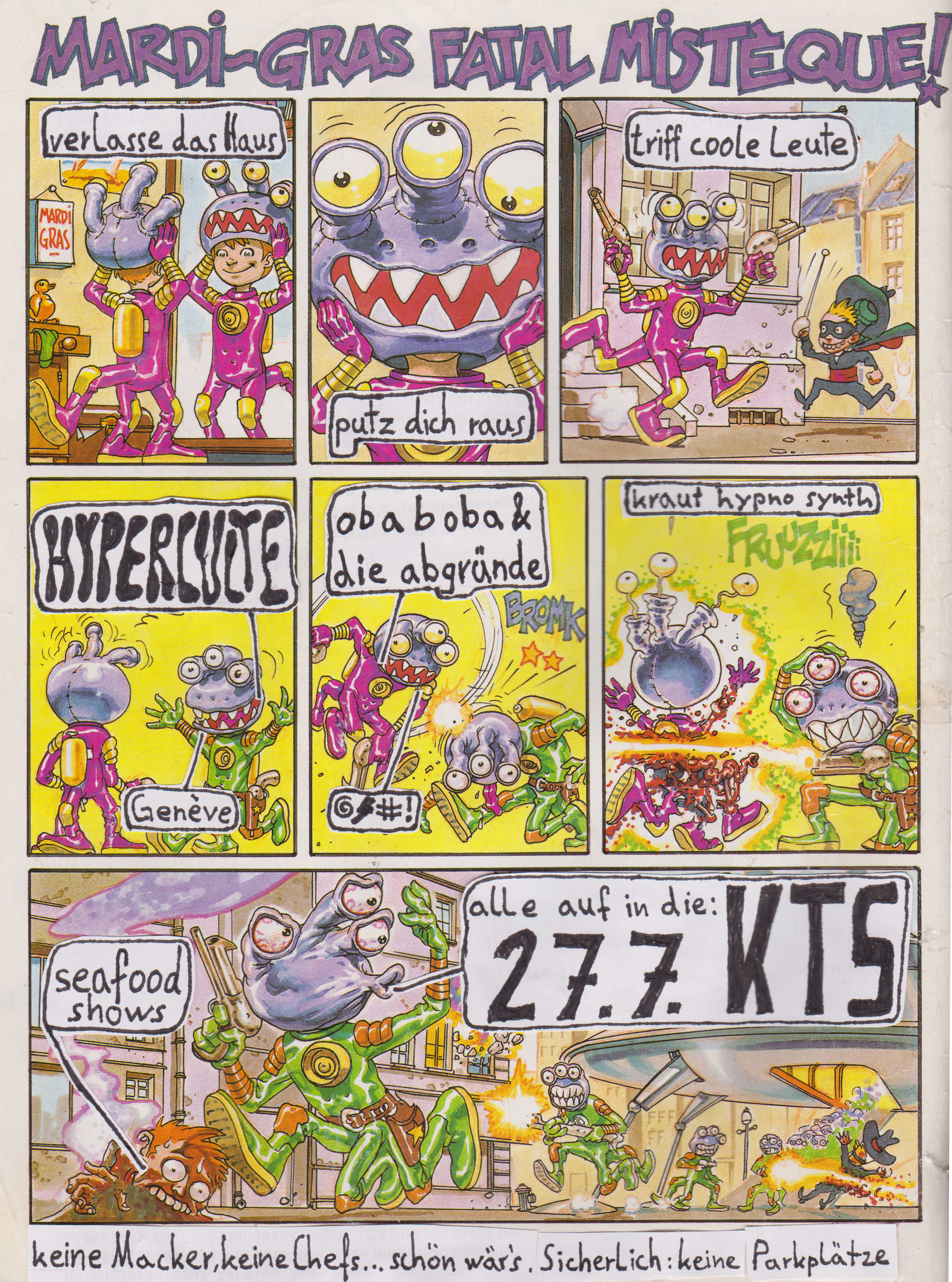 Da sind sie wieder: unsere beiden Nervensägen von außerhalb des Sonnensystems. Was bisher geschah: oba boba und die abgründe wollten ihre Lieblingsfernsehserie "Sex and the City" auf ihrem Heimatplaneten empfangen. Durch eine Verkettung wahnsinnig peinlicher Umstände (u.a. Butterbrotpapier falschrum gehalten) empfingen sie jedoch nicht, sondern wurden gesendet. Nicht nach New York, sonder F***burg im Breisgau.