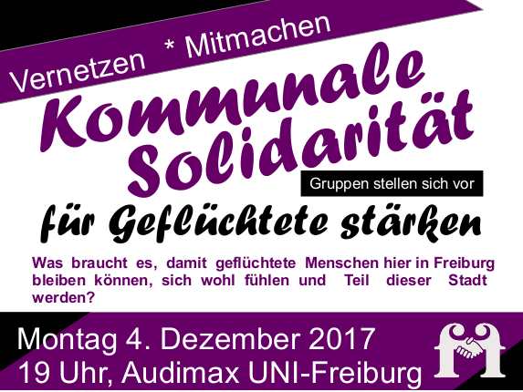 Was braucht es, damit geflüchtete Menschen hier in Freiburg bleiben können, sich wohl fühlen und Teil dieser Stadt werden? Viele Gruppen, Vereine und Anlaufstellen befassen sich mit dieser Frage. Sie verfolgen unterschiedliche Ansätze und machen vielfältige Angebote. Kurzvorstellungen mehrerer Initiativen bieten einen ersten Überblick; anschließend gibt es die Gelegenheit für Initiativen untereinander und interessierte Einzelpersonen, sich direkt zu vernetzen. Im Mittelpunkt soll dabei die Frage stehen: Was können wir gegen Abschiebungen und Entrechtung von Geflüchteten tun?