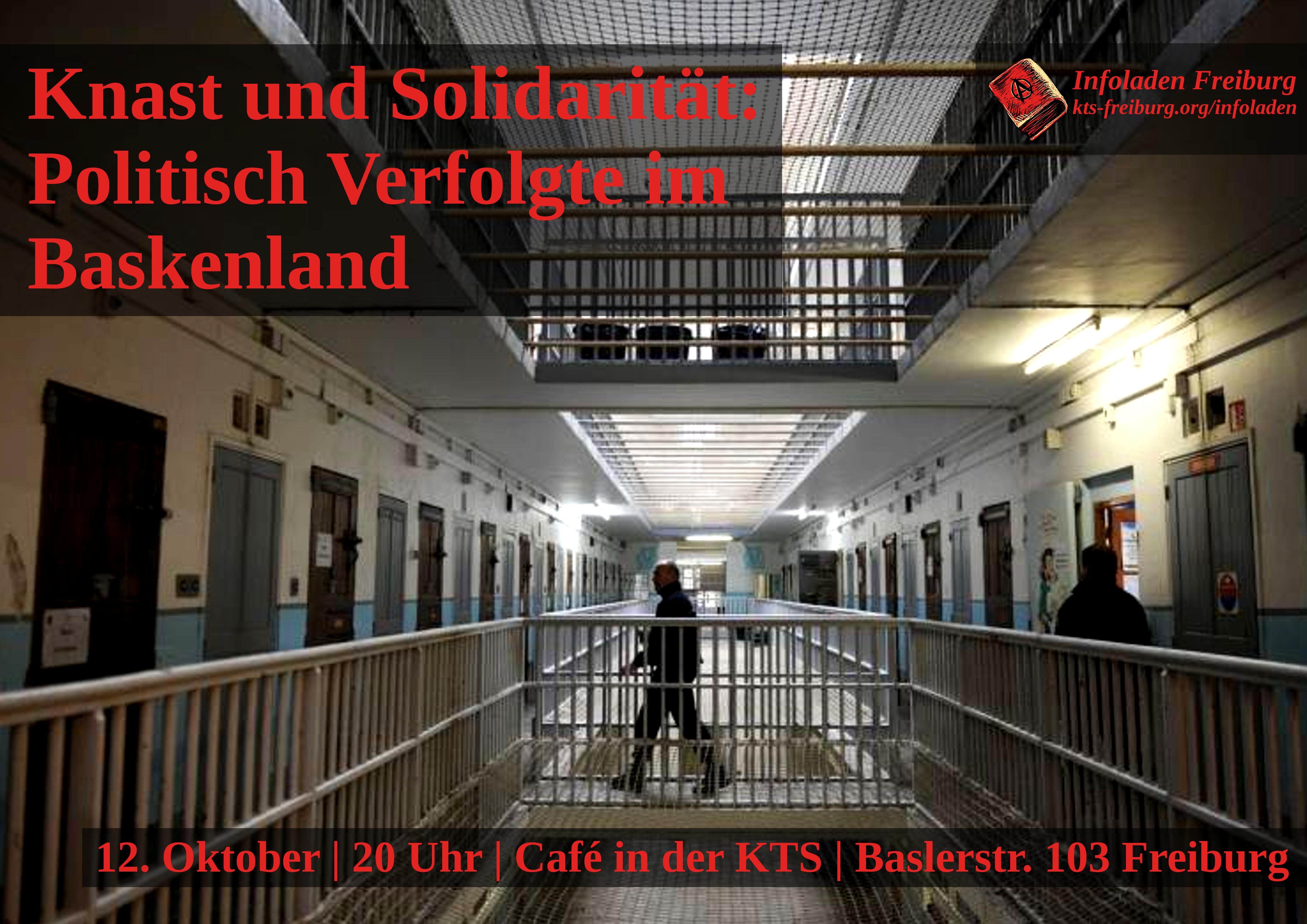Tomas ist nun wieder frei und wird heute abend über seine Verfolgung, seine Erfahrung in deutscher Auslieferungshaft und im größten europäischen Gefängnis Maison d’arrêt Fleury Merogis bei Paris berichten. Über die Situation im Baskenland selbst und zur Solidaritätsarbeit für politische Gefangene berichten Compas aus dem Baskenland. Mit Ihnen wollen wir über die Unterstützung von Inhaftierten und Geflüchtete sprechen und uns über Formen der Solidaritätsarbeit hier und dort austauschen.
