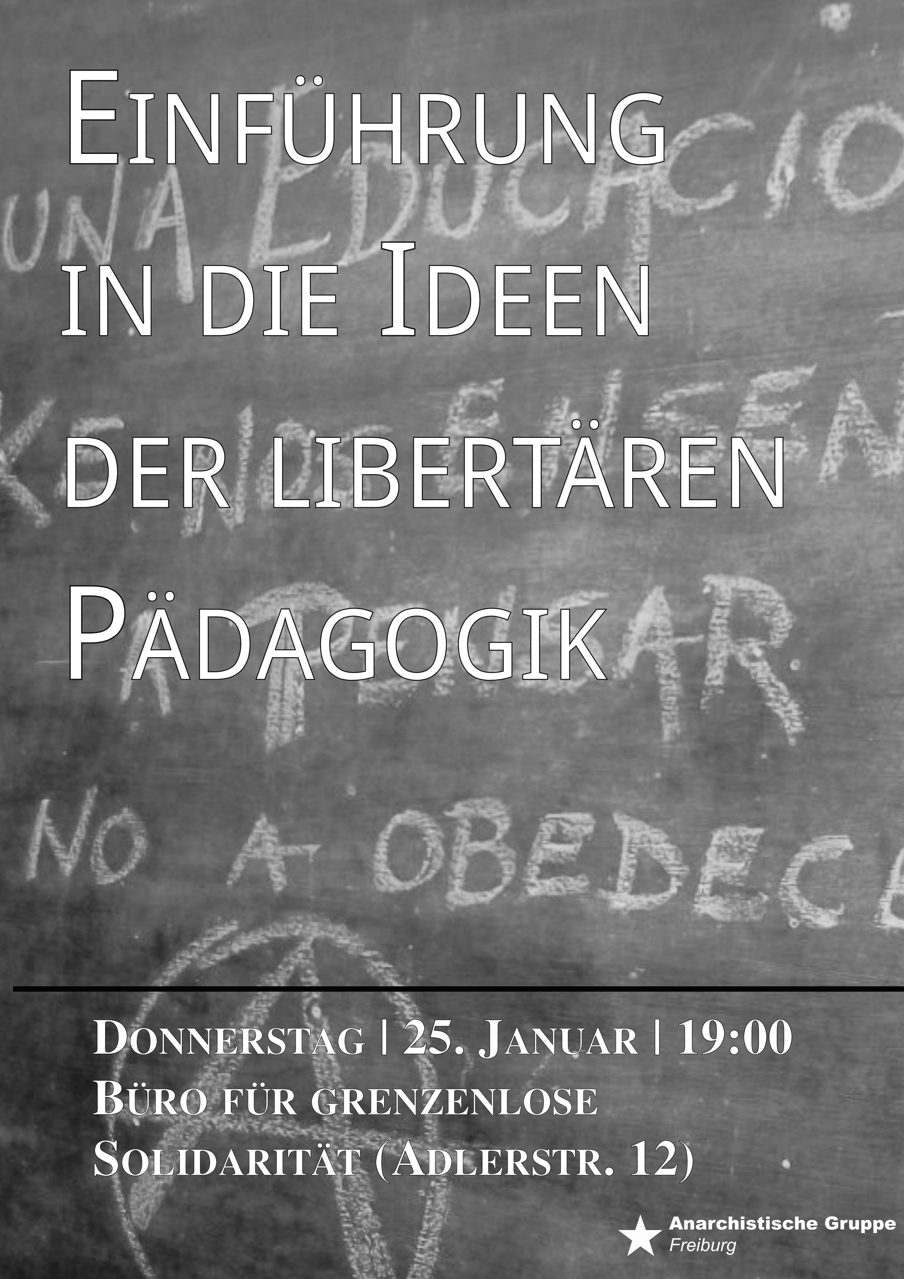 Der Vortrag wird sich mit Konzepten und Theorien der libertären bzw. anarchistischen Pädagogik auseinandersetzen. Es werden dabei die pädagogischen Vorstellungen der Klassiker des Anarchismus betrachtet, gleichzeitig werden aber auch historische und aktuelle Versuche der Umsetzung libertärer Ideen in den Blick genommen. Schlussendlich können wir uns fragen, ob solche Projekte im Bestehenden immer an ihre Grenzen stoßen oder ob es gewisse Spielräume für eine andere Form des Umgangs mit jungen Menschen schon im Hier und Jetzt gibt.