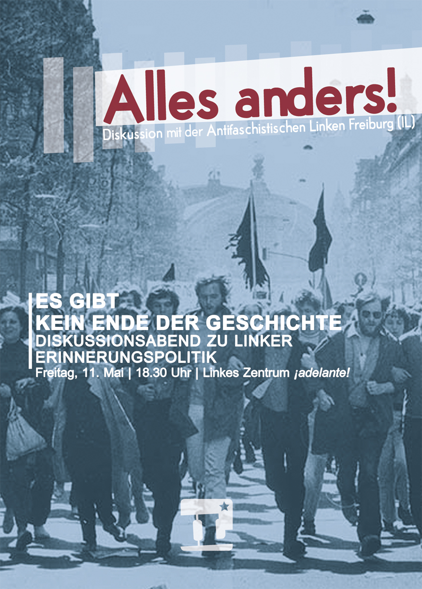 »Alles anders« ist ein offener Gesprächsabend mit der Antifaschistischen Linken Freiburg (IL). In entspannter Atmosphäre wollen wir uns über aktuelle politische Themen, Strategien und Handlungsalternativen austauschen. Dabei steht jeder Abend unter einem thematischen Schwerpunkt – vom Aufstieg der AfD über Klimakämpfe bis hin zur Frage, warum wir noch immer im Kapitalismus leben. Egal, ob ihr nur reinschnuppern, einen geselligen Abend verbringen oder mitdiskutieren wollt – jede_r ist herzlich willkommen. Wir freuen uns auf euch!