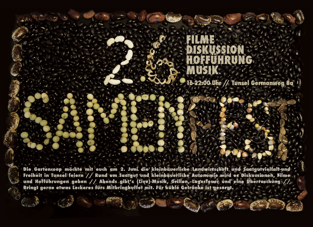 Am 2. Juni wird es ein Fest für kleinbäuerliche Landwirtschaft und Saatgutvielfalt- und Freiheit auf der Hofstelle der Gartencoop Freiburg in Tunsel geben.