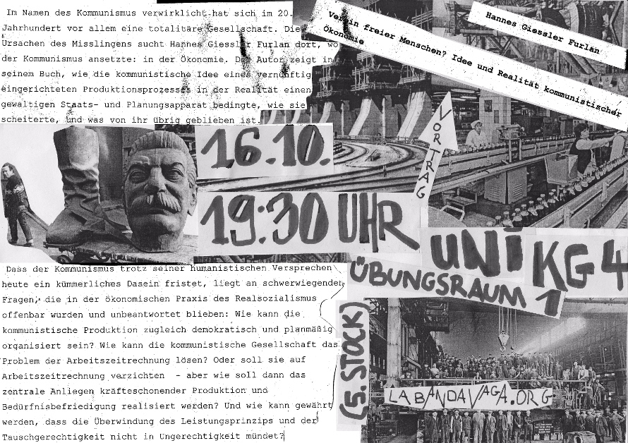 In Freiburg wird der Autor die Vorstellung seines Buches auf die Kritik des Rätekommunismus zuspitzen. Dieser steht heute, zumindest in kleinen Zirkeln, in denen das humanistische Versprechen des Kommunismus gehütet und über die Zeit gebracht wird, hoch im Kurs (etwa in dem lesenswerten Pamphlet Umrisse der Weltcommune der »Freundinnen und Freunde der klassenlosen Gesellschaft«). Wenngleich der Rätekommunismus historisch fast keine Schuld auf sich geladen hat, liefert auch er, so die These des Autors, kaum Antworten auf oben genannte Fragen.