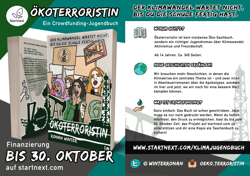 Den Druck versuche ich über Crowdfunding bei Startnext zu finanzieren. Kann man sich hier anschauen & unterstützen: https://www.startnext.com/klimajugendbuch