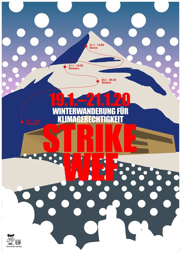 Wir wandern nach Davos, um den Wirtschaftsbossen und dem WEF mitzuteilen, dass es für sie Zeit ist, abzutreten. Wir rufen zu einer massenhaften, internationalen 3-tägigen Demo-Wanderung von Landquart nach Davos auf. Die Strecke ist rund 50 Kilometer weit. Die erste Etappe der Wanderung (Landquart nach Schiers) startet am Sonntag, 19. Januar und wird sicher der Tag mit den meisten Teilnehmenden. Am Montag geht es weiter von Schiers nach Klosters und am Dienstag, 21. Januar laufen wir die Schlussetappe von Klosters nach Davos, wo an diesem Tag das 50. WEF eröffnet wird.