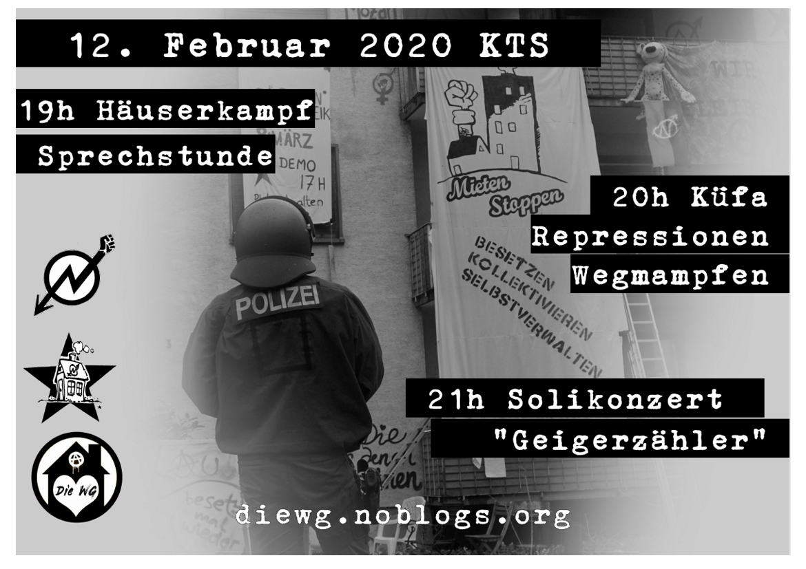 Diesen Monat findet die Häuserkampf Sprechstunde am 12.02 ab 19:00 Uhr in der KTS satt.