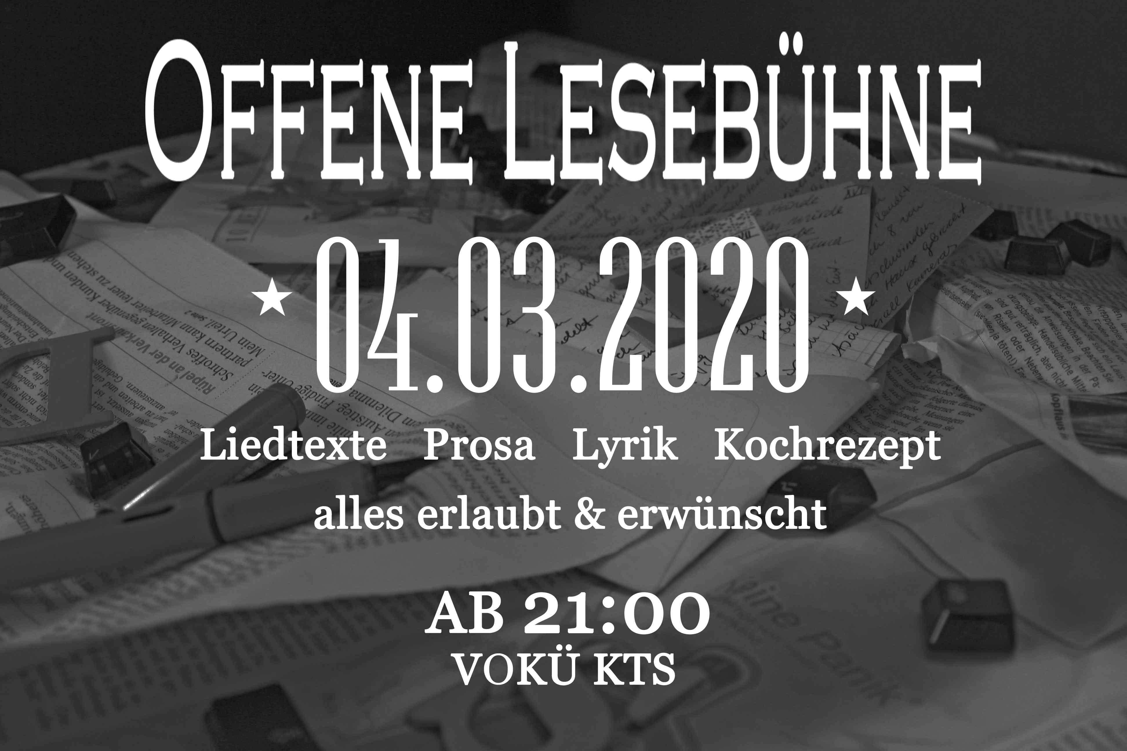 Nach der Voküfa wird es wieder eine neue Auflage der -Offenen Lesebühne- geben...