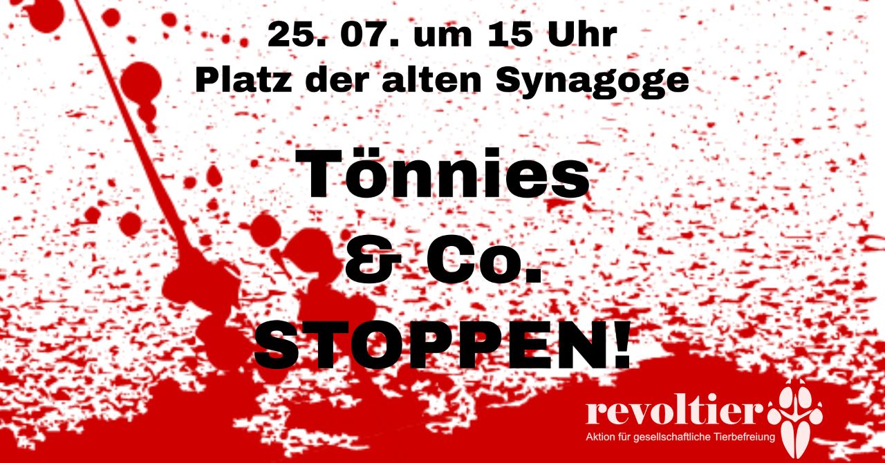 Allein in den Schlachthöfen des Tönnies-Konzerns werden jährlich über 20 Millionen Schweine und 440 000 Rinder gewaltsam getötet. Diese haben ein kurzes und unwürdiges Leben hinter sich. Sie wurden allein zum Zweck, für Profit getötet zu werden, gezüchtet.