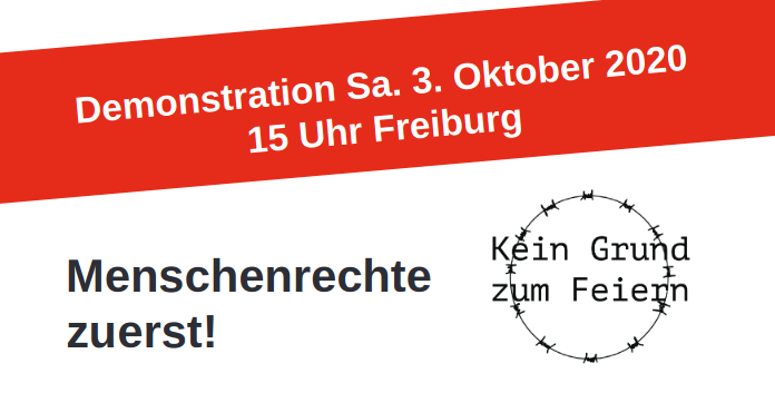 DEMO 3. Oktober 2020 in Freiburg, 15 Uhr: Kein Grund zum Feiern! - Menschenrechte zuerst!