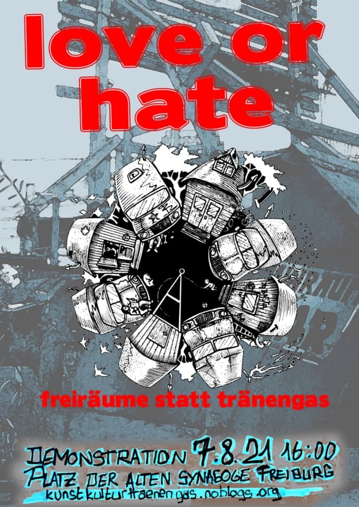 Am 07.08.2021 gehen wir auf die Straße. Wir werden für ein selbstverwaltetes Miteinander demonstrieren.Für Projekte in denen wir uns auf Augenhöhe begegnen, zusammen unseren Alltag organisieren und  unkommerzielle Kunst und Kultur veranstalten, an der jede*r teilhaben und die sich jeder leisten kann.