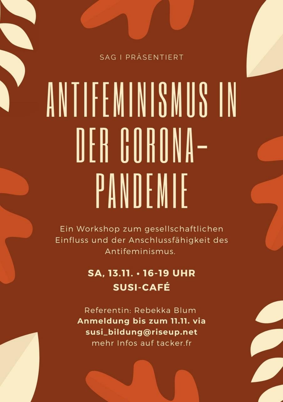 Um ein gemeinsames Verständnis von Antifeminismus zu entwickeln, zeige ich in einem Input zunächst Kontinuitäten antifeministischer Bewegungen und Rhetoriken des Antifeminismus auf. Dabei wird deutlich, dass Antifeminismus gesellschaftlich breit anschlussfähig ist und zentraler Bestandteil konservativer, religiös-fundamentalistischer, maskulinistischer und extrem rechter Bewegungen ist. Davon ausgehend betrachten wir antifeministische Entwicklungen im Zuge der Corona-Pandemie und bei den verschwörungsideologischen Protesten gegen die Corona-Maßnahmen. Der Workshop zeigt die Verschränkung von Antifeminismus zu weiteren Ideologien wie Rassismus, völkischer Ideologie und insbesondere Antisemitismus auf.