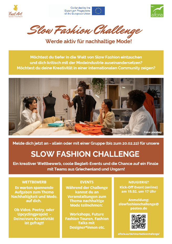 die aiforia- Agentur für Nachhaltigkeit in Freiburg organisiert von 01.März bis 31.Mai 2022 eine "Fashion Challenge" im Rahmen des EU-Projekts "Fast Art. Slow Fashion".