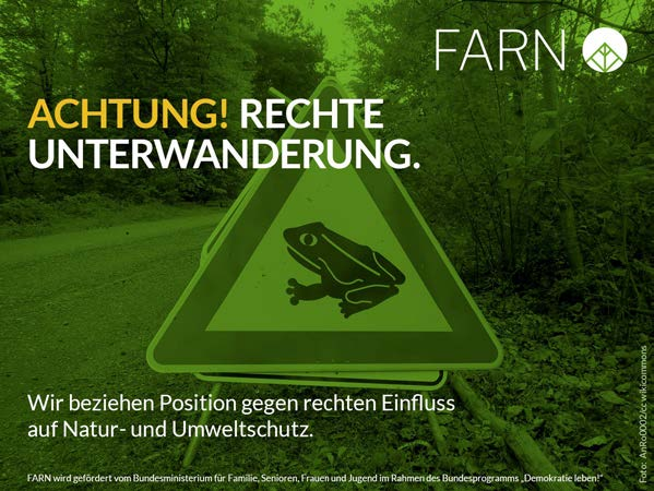 FARN – die Fachstelle Radikalisierungsprävention und Engagement im Naturschutz untersucht die historischen und aktuellen Verknüpfungen des deutschen Natur- und Umweltschutzes mit extrem rechten und völkischen Strömungen.