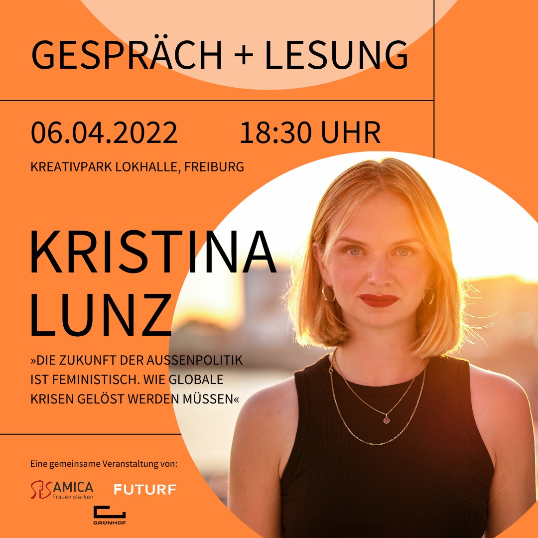 Die Freiburger Organisationen AMICA e.V., FUTUR F und Grünhof laden Kristina Lunz ein, um diese und weitere Fragen auf Grundlage ihres jüngst erschienen Buches zu diskutieren und Einblicke in den Ansatz einer feministischen Außenpolitik zugeben.